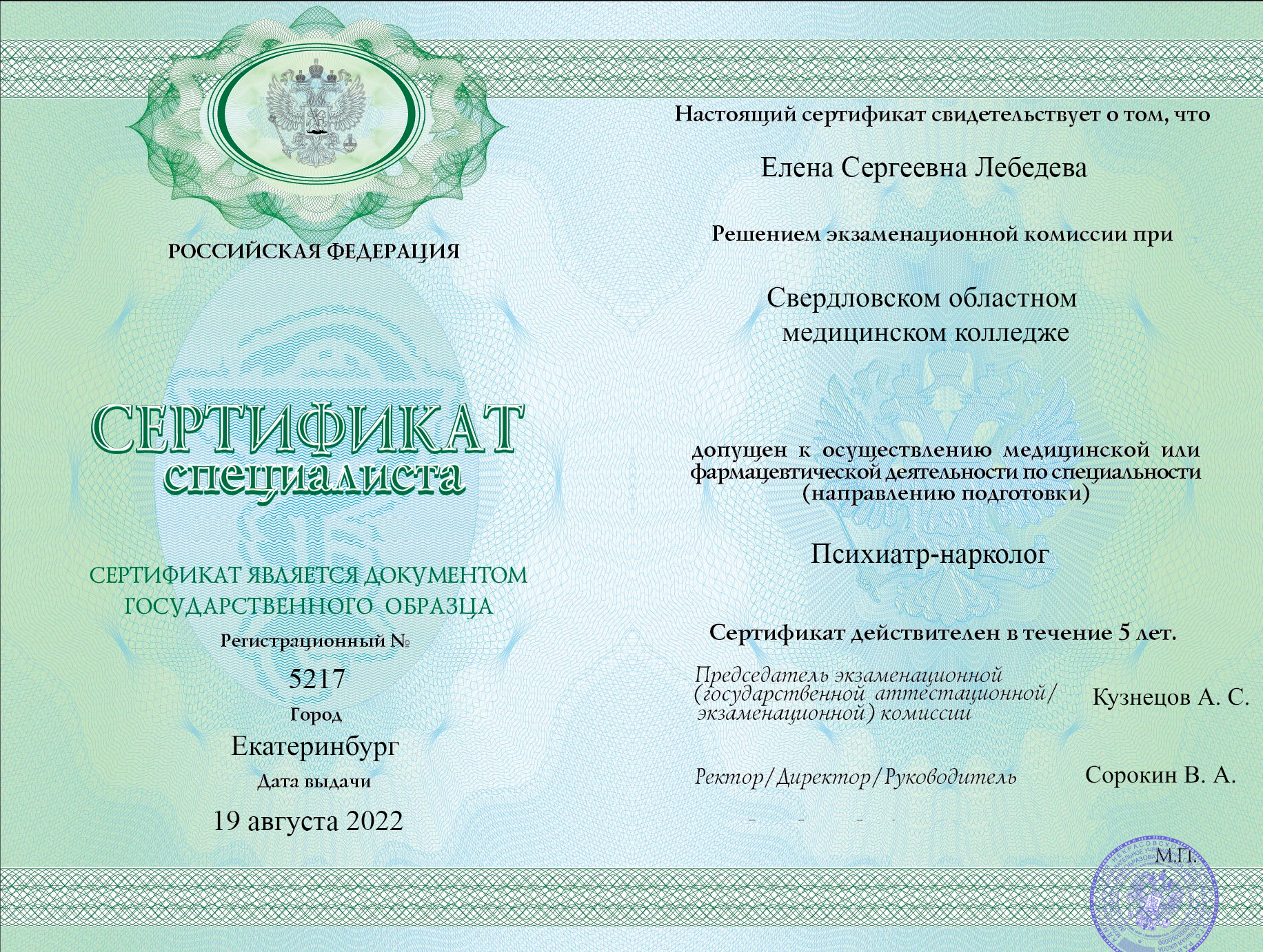 Елена Сергеевна Лебедева врач нарколог клиники доктора Стукаловой в Солнечном